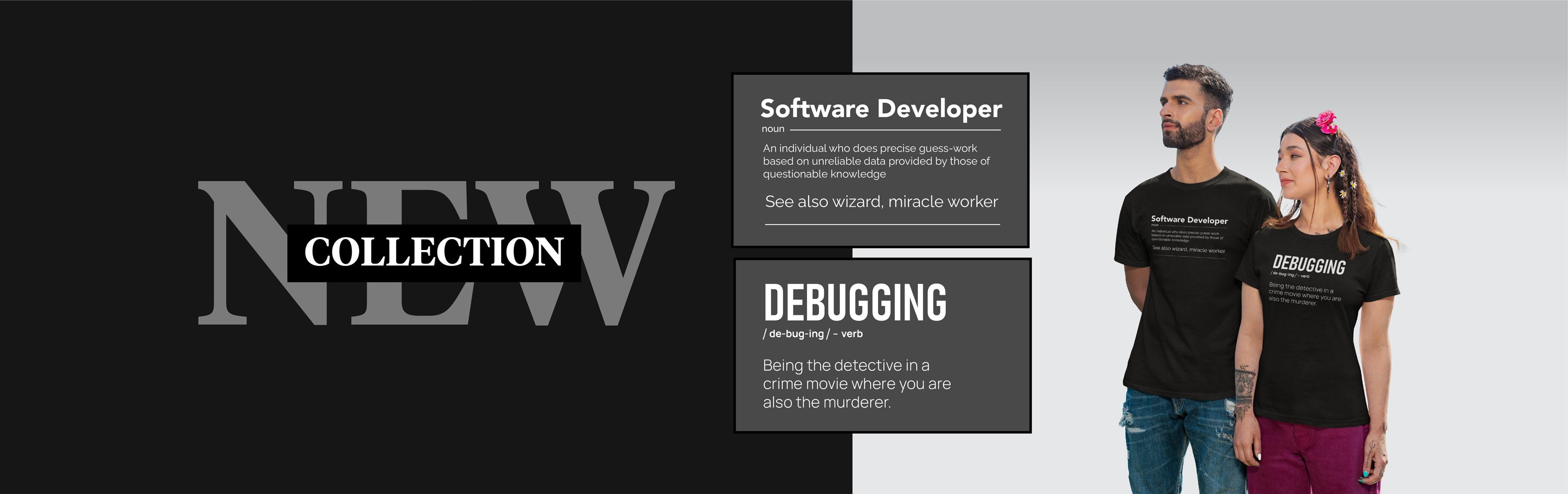 The "Awesome Dev" collection offers sleek T-shirts with unique, code-inspired designs, perfect for coders who want to express their passion for programming in style.